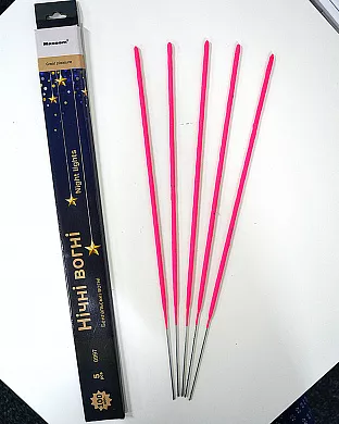 Набор из 5 бенгальских огней ярко-розового цвета. Цвет огня - обычный желтый.