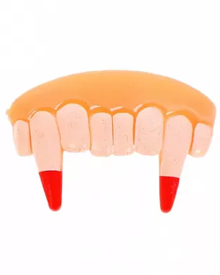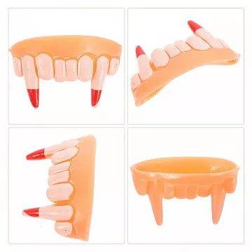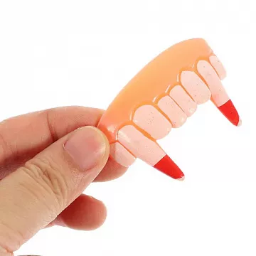 Резиновая накладка с клыками в виде вампирской челюсти. Аксессуар идеально дополнит образ вампира на тематическую вечеринку или Хэллоуин.