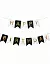 Бумажная гирлянда с черно-белыми флажками на которых нанесены серебряные или золотые буквы. Флажки на гирлянде не скреплены между собой и их нужно самостоятельно нанизывать на веревку (в комплекте).
