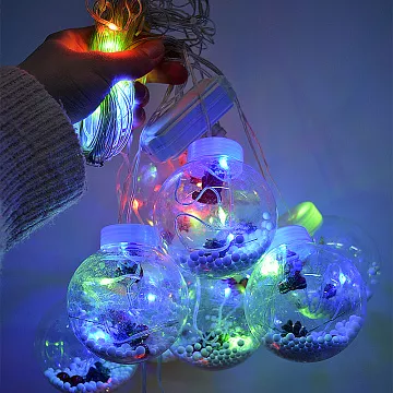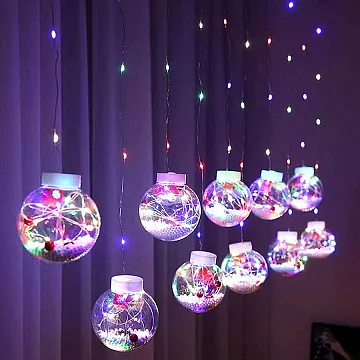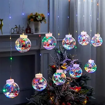 Очень красивая светодиодная led-гирлянда мультиколор в виде шторы с прозрачными шарами, наполненными декором в виде Санты. Данная гирлянда работает от подключения к розетке и предназначена для использования в помещении. На ней присутствует хвостовая вилка, с помощью которой, можно соединить две гирлянды между собой.