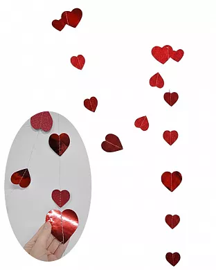 Гирлянда вертикальная Сердца красные