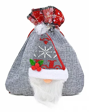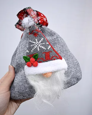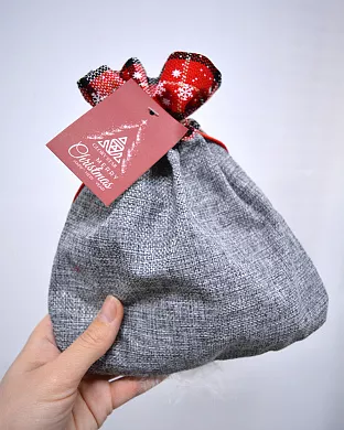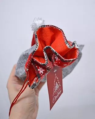 В таком новогоднем подарочном мешочке, можно отлично разместить небольшие сувениры и подарки на Рождество и Новый год для близких и друзей, а благодаря ленточкам-затяжка, можно не переживать что из него может что-то выпасть!