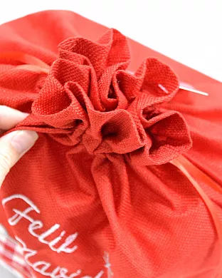 За счет его размера, в него поместятся все подарки, а с помощью шнура, можно не переживать что из него может что-то выпасть!