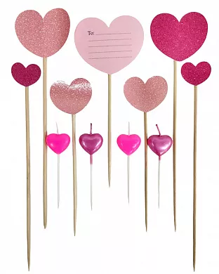 Набор свечей сердца с топперами