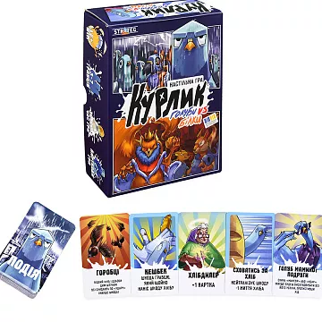 - Комплектация: 144 карточек, 50 жетонов, плашка, инструкция;