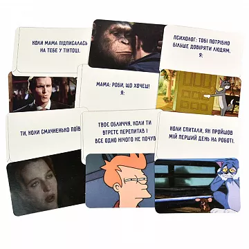 Раздайте карточки, выберите судью, и пусть креативность и юмор ведут вас к победе! Выигрывает тот, кто соберет больше текстовых карт.
