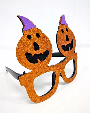 Яркие пластиковые очки в виде пары милых улыбающихся тыкв в колпаках ведьмы. Оригинальный аксессуар прекрасно дополнит яркий образ на хэллоуинскую вечеринку как детям, так и взрослым!