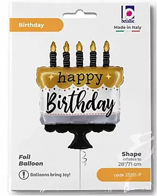 Большой шар-фигура в виде праздничного торта со свечами. Надувается и гелием, и воздухом (имеет встроенный клапан, упрощающий надув). Фольгированные воздушные шарики изготавливаются из тонкой лавсановой пленки, что позволяет шару долго не сдуваться (при правильной эксплуатации). Воздушные шарики – это не только красивая декорация, но и отличный вариант для подарка!