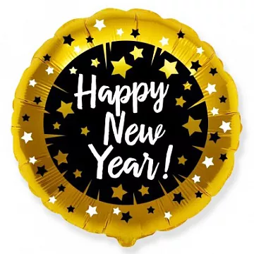 18 дюймовый новогодний шар в форме круга, с надписью Happy New Year. Приспособлен как под гелий так и под воздух. Фольгированные воздушные шары изготавливаются из тонкой полимерной пленки, позволяющей шару не сдуваться в течение нескольких дней-недель. Имеет так же встроенный клапан, который упрощает надув и не дает шару сдуваться даже с не завязанным хвостиком (обратный клапан хорошо удерживает гелий внутри шара).