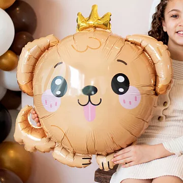 Фольгированный шар в форме милой собачки с золотой короной. Надувается и гелием, и воздухом (имеет встроенный клапан, который упрощает надув). Фольгированные воздушные шары изготавливаются из тонкой лавсановой пленки, которая позволяет длительное время не сдуваться. Надутый шар Собачка отлично подойдет для оформления помещения и создания праздничной атмосферы на тематический день рождения как взрослому, так и ребенку!