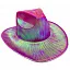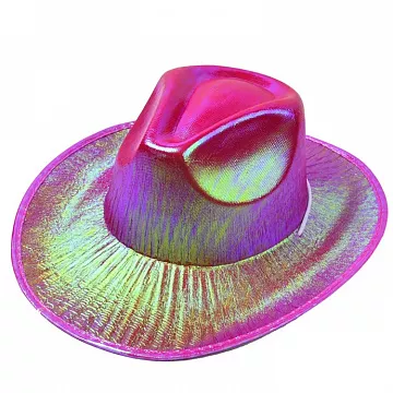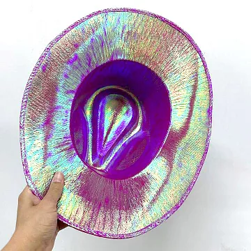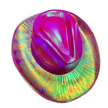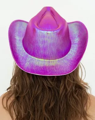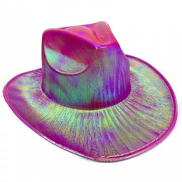 Ковбойская шляпа малинового цвета, с эффектом голографического градиента. Сверху шляпа покрыта специальной пленкой, которая очень красиво переливается при попадание света на нее.