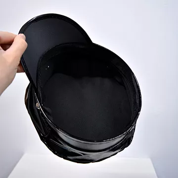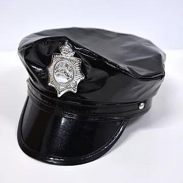 Лаковая шляпа полицейского черного цвета – отличный аксессуар для создания яркого образа на тематической вечеринке или костюмированном празднике. Головной убор полицейского дополнит костюм полицейского или же прикольный образ правонарушительницы на девичник!