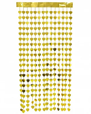Красивая декорация в виде шторы из дождика с сердечками золотого цвета. Шторка занавес из дождика сердечки отлично украсит дверной проем, стену или ее можно использовать как фотозону для любой вечеринки!