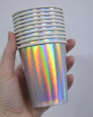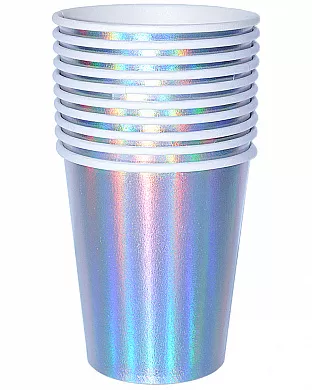 Набор бумажных стаканчиков с голографическим эффектом. Такие голографические одноразовые стаканчики для вечеринки станут отличным дополнением к сервировке стола как на взрослый, так и на детский день рождения!