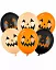 Яркие шарики из натурального латекса, оранжевого, черного и персикового цвета с рисунком в виде милых мордочек зловещих тыкв.
