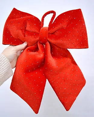 Бант новорічний червоний зі стразами 36 см