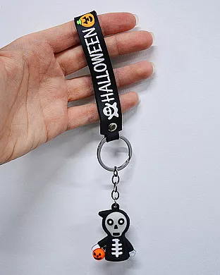 Силіконовий брелок у вигляді милого скелета, на силіконовому браслеті з написом Halloween.