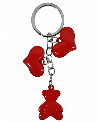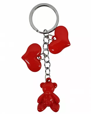Пластиковий брелок у вигляді об'ємних червоних сердець на ланцюжку. Аксесуар підійде для власного використання і в якості сувеніра для коханої людини.