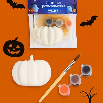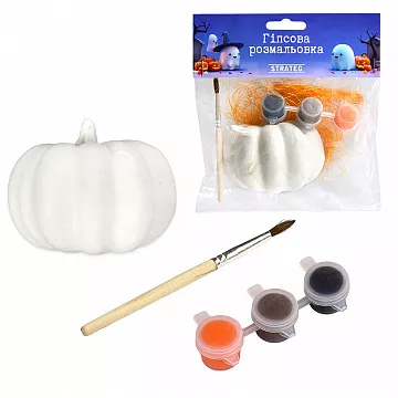 - Комплектація: гарбуз для розпису, пензлик, фарби 3 кольори, декоративний наповнювач;