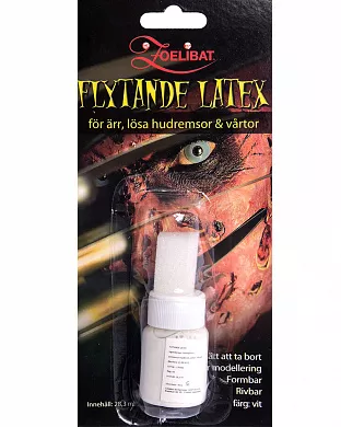 Рідкий латекс у зручній баночці зі спонжиком, для створення прикольного ефекту штучної шкіри. З його допомогою можна легко створити жахливі рани або облізлу шкіру самостійно.