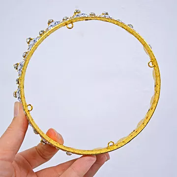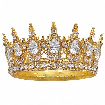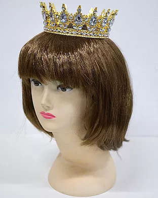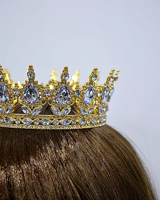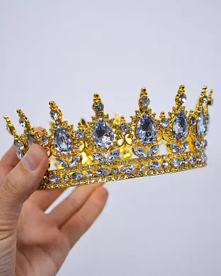 Декоративна металева корона золотого кольору, прикрашена білим камінням.