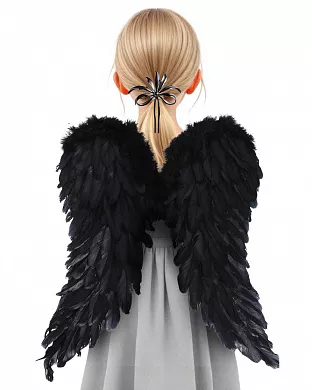 Ангельські крила чорного кольору – це оригінальний аксесуар для доповнення дитячого та дорослого образу на тематичне свято, а також для косплею.