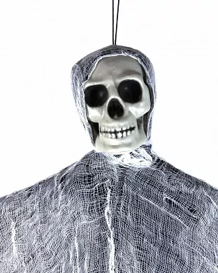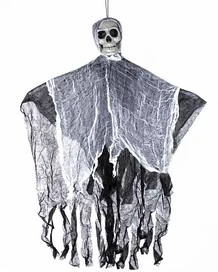 Лялька Привид - це підвісна фігура монстра з пластиковою головою та кистями рук, одягнена в балахон, що створює їй видимість тіла. В основі рук є дріт, що дозволяє їх згинати та фіксувати у будь-якому положенні. Оригінальний елемент декору для оформлення приміщення на свято Хелловін або тематичну вечірку.