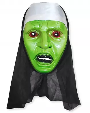 Пластикова маска у вигляді монашки-зомбі. Маска тримається за допомогою балахона, тому за розміром підійде будь-якій людині. Відмінно доповнить моторошний образ на тематичну вечірку та свято Хелловін.