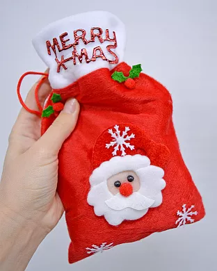 У такому новорічному подарунковому мішечку, можна чудово розмістити невеликі сувеніри та подарунки на Різдво та Новий рік для близьких та друзів, а завдяки стрічкам-затяжкам, можна не переживати що з нього може щось випасти!