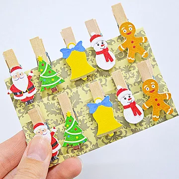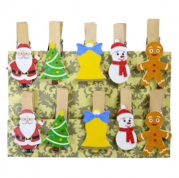 Міні прищіпки Новорічний мікс 10 од