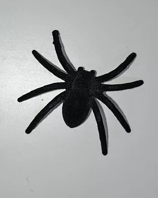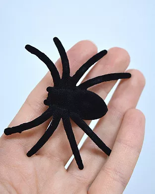 Набір складається з 6 чорних павучків, покритих оксамитовим напиленням. Павуків можна розмістити на стелі або стінах за допомогою двостороннього скотчу або ж, підвісити на волосінь або мотузку, і вони будуть прикрашати приміщення на Хелловін як тематична гірлянда!