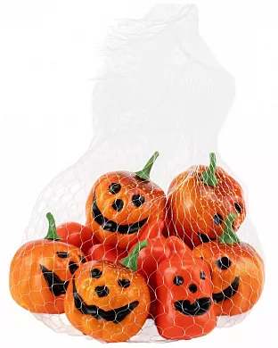 Набір яскравих хелловінських гарбузиків із пінопласту може використовуватися як настільна або підвісна прикраса. Гарбузами можна окремо прикрасити стіл, підвіконня або будь-який інший предмет, а також вручати як сувеніри на свято Хелловін дітям. А також, можна використовувати декор прямо в мішечку, для прикраси не тільки для приміщення, а й вулиці, на тематичну вечірку або свято Хелловін.