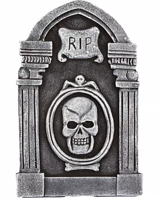 Декорація у вигляді могильної плити з черепом у склепі та написом RIP ("Rest in Piece"). Оригінальний елемент оформлення приміщення на Хелловін або хорор-вечірку.