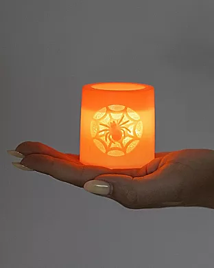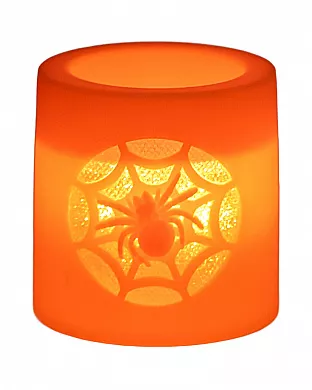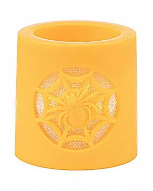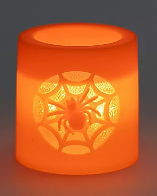 Невеликий пластиковий світильник, помаранчевого кольору, прикрашений декором у вигляді павутиння з павуком. Працює від трьох батарейок-таблеток типу AG13 (входять до комплекту), має перемикач вкл/вимк.