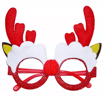 Блискучі окуляри з милими ріжками, носиком та вушками оленя. Основа оправи червоного кольору, виготовлена з гнучкого пластику, тому не тиснутиме і підійде на будь-який розмір. Яскравий аксесуар чудово доповнить новорічний образ та подарує святковий настрій!
