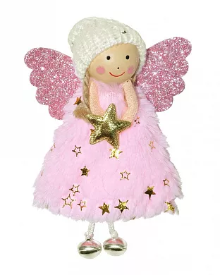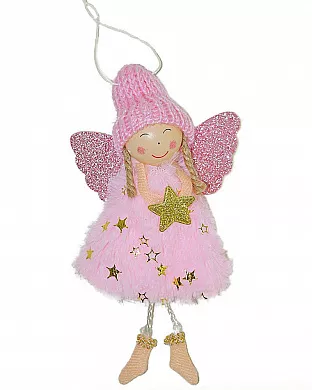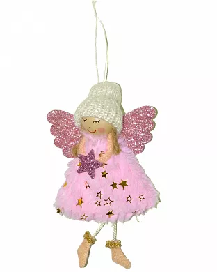 Текстильна мила підвіска у вигляді чарівної феї з блискучими крильцями та зірочкою. В іграшці передбачена петелька, яка використовується для закріплення іграшки на гілці.