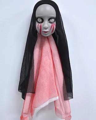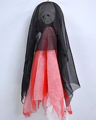 Підвісний декор Лялька буде оригінальним елементом декору для оформлення приміщення на свято Хелловін або тематичну вечірку.