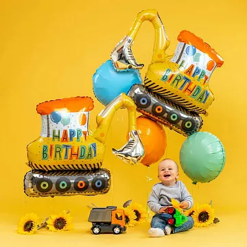 Надутий шар екскаватор відмінно підійде для оформлення приміщення та створення святкової атмосфери на день народження дитині!