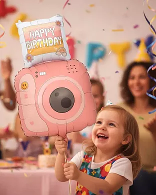 Надута кулька фотокамера відмінно підійде для подарунку людині, котра любить та займається фотографією, а також стане чудовим доповненням до фотозони на дитячу та дорослу вечірку!