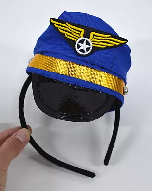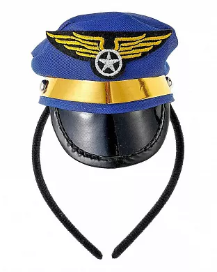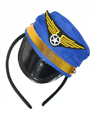 Обруч з невеликою копією шапки пілота авіації. Аксесуар чудово доповнить образ на тематичну вечірку, а за рахунок гнучкого обруча та додаткової тканини на ньому - підійде на будь-який розмір голови!