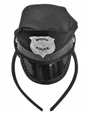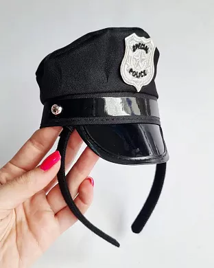 Обруч з невеликою копією шапки поліцейського. Аксесуар чудово доповнить образ на тематичну вечірку, а за рахунок гнучкого обруча та додаткової тканини на ньому - підійде на будь-який розмір голови!