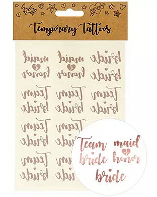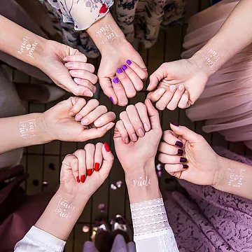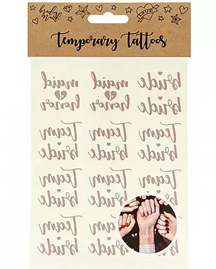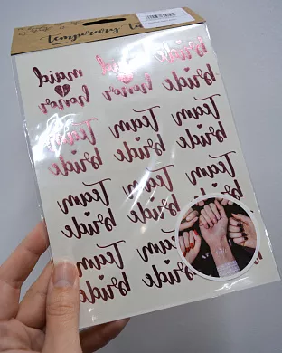 - Кількість тату на листі: 13 шт (9 шт "Команда нареченої", 2 шт "Наречена", 2 шт "Дружки нареченої");
